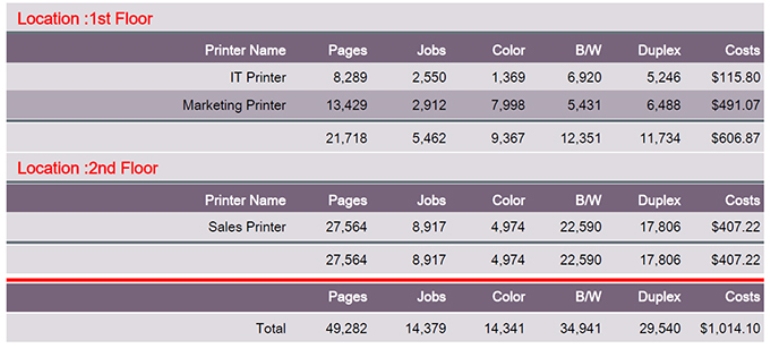 Comprehensive and complete usage statistics enables the management team to know the print and photocopy volume of each employee in real time. Moreover, all data is reported in various forms to facilitate comparison, summarization and presentation. The management team can also customize statistical items and optimize the use of internal multifunctional devices in the more cost-effective way (including printing cost reduction and machine relocation). Meanwhile, all usage reports can be updated in real time at regular intervals and shared with relevant parties in different file formats such as Word, PDF and Excel.