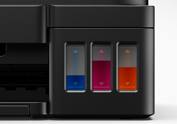 Built-in integrated ink tanks create a compact printer body. Users can also view remaining ink levels easily at a glance.