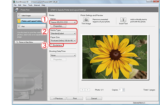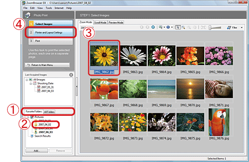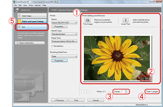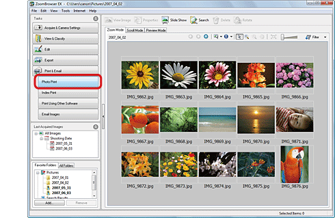 Making Prints of Images Downloaded to Your Computer with the Date Imprinted (ZoomBrowser EX)