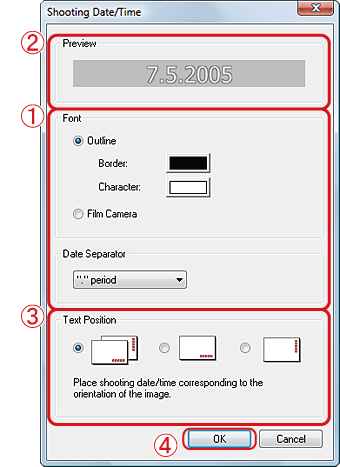 Using ZoomBrowser EX, you can make prints with the date imprinted on images you have downloaded to your computer.