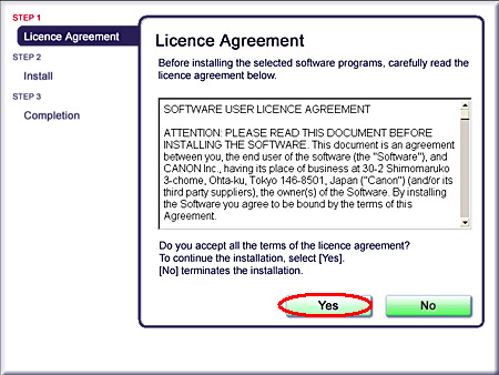 When the screen to select software is displayed, make sure that ScanGear is checked and remove the checkmarks of the other applications. Click [Install].