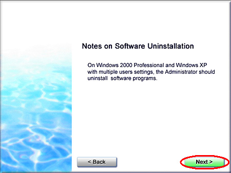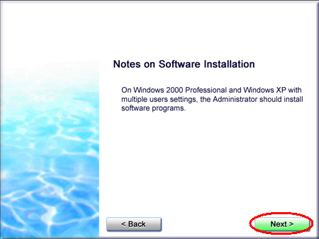 During the installation, do not click any items other than those specified in dialogs (messages) that appear on the screen.