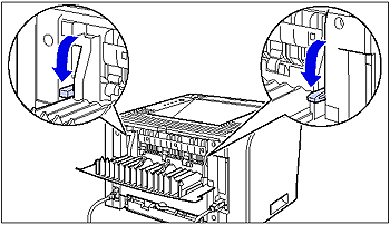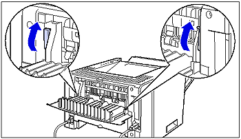 13. Move the green pressure release levers of the fixing unit back to their original positions.