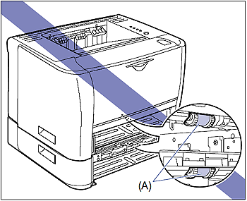 - Do not touch the feed rollers (A) in the printer unit and paper feeder. This may result in damage to the printer or a printer error.