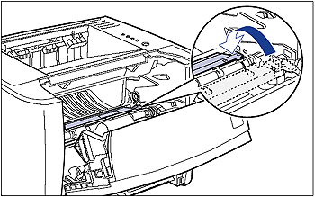 When removing the jammed paper, pull it as horizontally as possible. Dirt inside the printer may cause deterioration in print quality.