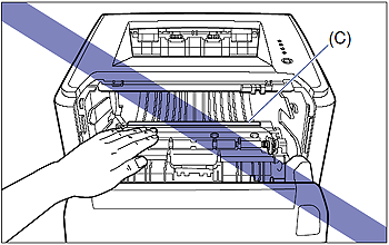 - Do not touch the transfer roller (C), as this may result in deterioration in print quality.