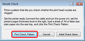 - When cleaning is not necessary : Click Exit or Quit on the Pattern Check dialog box to exit nozzle check pattern examination.