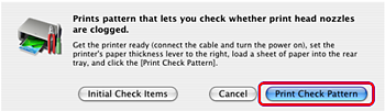 - When cleaning is necessary : Click Cleaning, and then go to step 3-(3) of the Windows or Macintosh Print Head Cleaning procedure, depending on your platform. See [ Print Head Cleaning ].