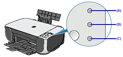 ![]() (C) The Ink lamp lights. | Ink is low. You can continue printing for a while, but we recommend you to have a new FINE Cartridge available. *The diagram on the left indicates the status of the Color FINE Cartridge as an example. |