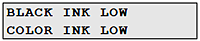 ![]() | This message is displayed on the following occasions. We recommend that you replace the FINE Cartridge promptly. - Ink is low while printing in fax mode - Ink is low while receiving a fax in fax mode (the received fax is stored in memory.) |