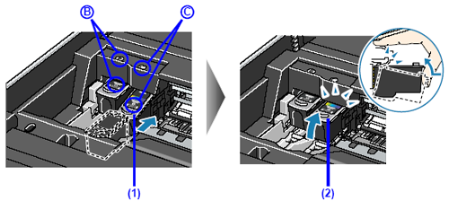 (1) Insert a new FINE Cartridge all the way into the appropriate slot.