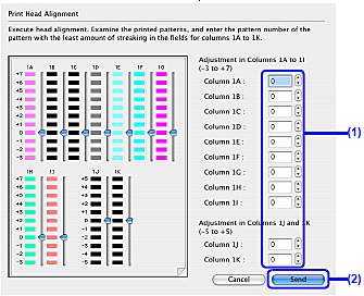 If it is difficult to pick the best pattern each from Columns 1J and 1K, pick the setting that produces the least noticeable vertical white stripes.