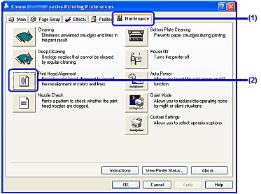 - The Print Head can also be aligned from the printer itself. If the printer driver is not installed in the computer, align the print head in this way.