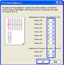 - Two different patterns other than the ones shown above may be printed if you align the Print Head automatically for the first time after installing the printer driver.