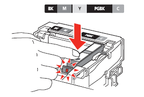 Press the PUSH mark on the ink tank until it clicks into place.