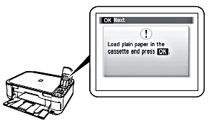 7. Load three or more sheets of A 4 or Letter -sized plain paper into the Cassette (C), then press the OK button .