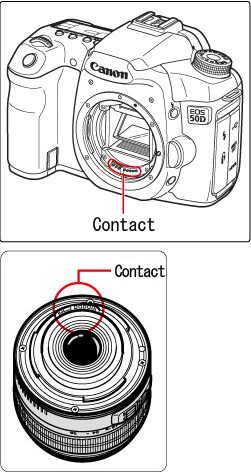 If the contacts on either the lens side or the camera side get dirty, communication cannot be carried out correctly, and in some cases the autofocus may not operate correctly. If the lens or camera contacts get dirty, please clean them very gently with a clean, dry cloth.