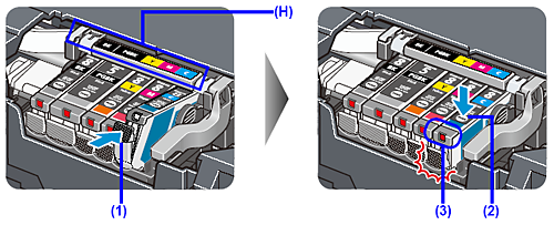 (1) Push the tab and remove the ink tank.