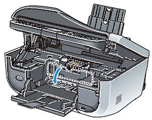 The Paper Output Tray will open automatically and the Print Head Holder moves to the center.