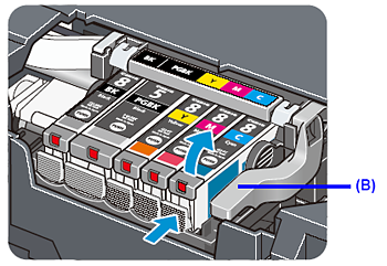 (B) Do NOT touch the Print Head Lock Lever; remove only the ink tank.