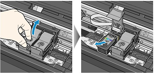 - If a FINE Cartridge runs out of ink, you can print with either Color or Black FINE Cartridge, in whichever ink remains, only for a while. However the print quality may be reduced compared to when printing with both cartridges. We recommend to use new FINE Cartridges in order to obtain optimum qualities. Even when printing with one ink only, print with leaving the empty FINE Cartridge installed. If either of the Color FINE Cartridge or Black FINE Cartridge is not installed, an error occurs and the machine cannot print.