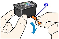(1) Take a new FINE Cartridge out of its package and remove the orange protective tape (D) gently.
