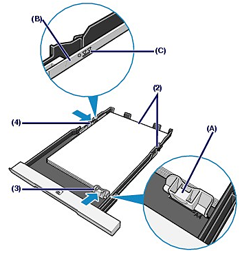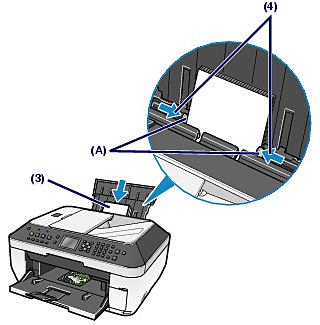 (4) Slide the Paper Guides (A) to align them with both sides of the paper stack.