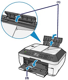 (1) Open the Paper Support, raise it, then tip it back.