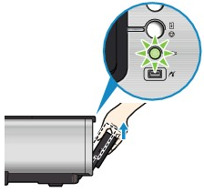 (1) Make sure that the Power lamp is lit and the Front Feed button is flashing quickly.