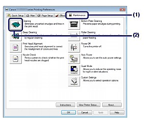 (1) Make sure that Cleaning is selected in the pop-up menu.