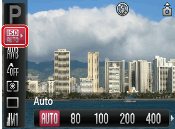 ) appears when you press the <Shutter Button> halfway, it is recommended to gradually raise the ISO speed in increments such as [ISO 80], [ISO 100], etc., and then set the [ISO Speed] when the camera shake warning icon (