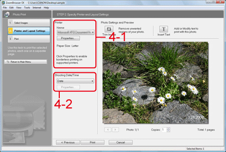4. When the [Photo Print] screen appears, make the following settings.