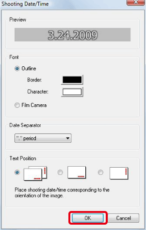 5. When the [Shooting Date/Time] dialog box appears, set the styles for the dates to be entered.