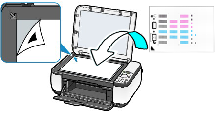 - The print head alignment sheet is placed in the correct position with the printed side facing down.