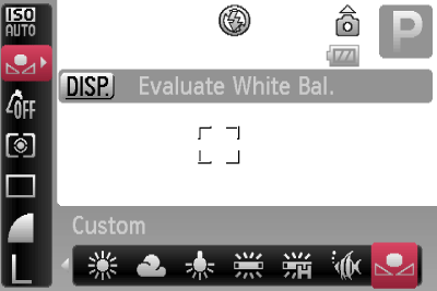 ![]() | Custom | Manually sets a custom white balance. |