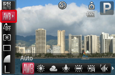 ![]() | Auto | Automatically sets the optimal white balance for the shooting conditions. |