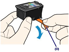 (1) Take a new FINE Cartridge out of its package and remove the orange protective tape (D) gently.