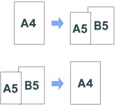 You can copy with enlarge or reduce page size depending on loaded paper, or by changing a ratio with the selected page size, such as 70% A4 -> A5 or 115% B5 -> A4.