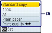 (3) Confirm the copy type, magnification, page size, media type, etc.