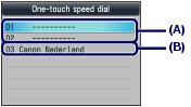 , and press the OK button.(3) Select One-touch speed dial, and press the OK button.