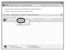 Select the network name (SSID) from the list and right-click it, then select Properties.