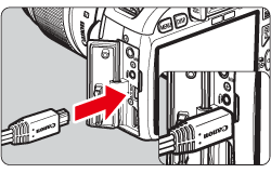 Connect the stereo AV cable to the camera's < A/V OUT / DIGITAL > terminal. With the plug's <Canon> logo facing the back of the camera, insert it into the < A/V OUT / DIGITAL > terminal.