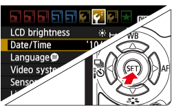 4. Press the <Cross Keys> to select [Date/Time], then press <SET> button.