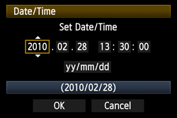 - If you store the camera without the battery or if the camera's battery becomes exhausted, the date/time might be reset. If this happens, set the date/time again.