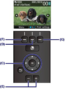 (1) Press the right Function button (G) to select Print settings, and confirm the page size, media type, print quality, etc.