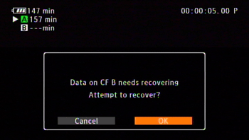 - While you are recording, you can recover data on the CF card that is not being recorded to.