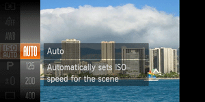 ) again. Press the <directional button> up or down to select the desired [ISO speed].