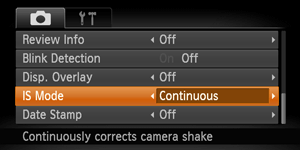 ) mode, the [IS mode] will automatically be set to [Continuous].