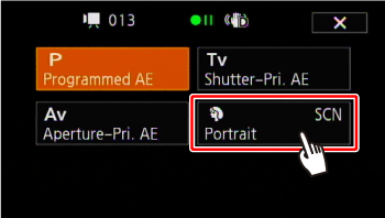 Portrait* ].*The current Special Scene recording program setting is displayed.