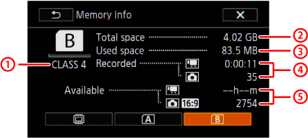 This section explains the procedure to check the amount of the built-in memory or memory cards that is currently in use.